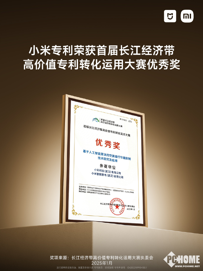 小米科技家电又一项专利技术获殊荣,获得「长江经济带高价值专利转化运用大赛优秀奖」。