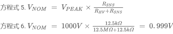 对于 1000V 器件:RHV = 12.5MΩ;RSNS = 12.5kΩ。该设计需要在 SNSP 和 AGND 之间包含一个外部电阻 REXT。这可能会对系统造成二次误差,因此不建议这样做。不得超过器件的绝对最大额定值。