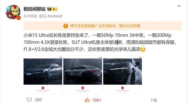 快科技2月15日消息,博主数码闲聊站爆料,小米15 Ultra拥有两颗长焦镜头,一颗是5000万像素79mm中焦,一颗是2亿像素100mm潜望长焦,前者光圈是f/1.8,支持3倍光学变焦,后者光圈是f/2.6,支持4.3倍光学变焦。