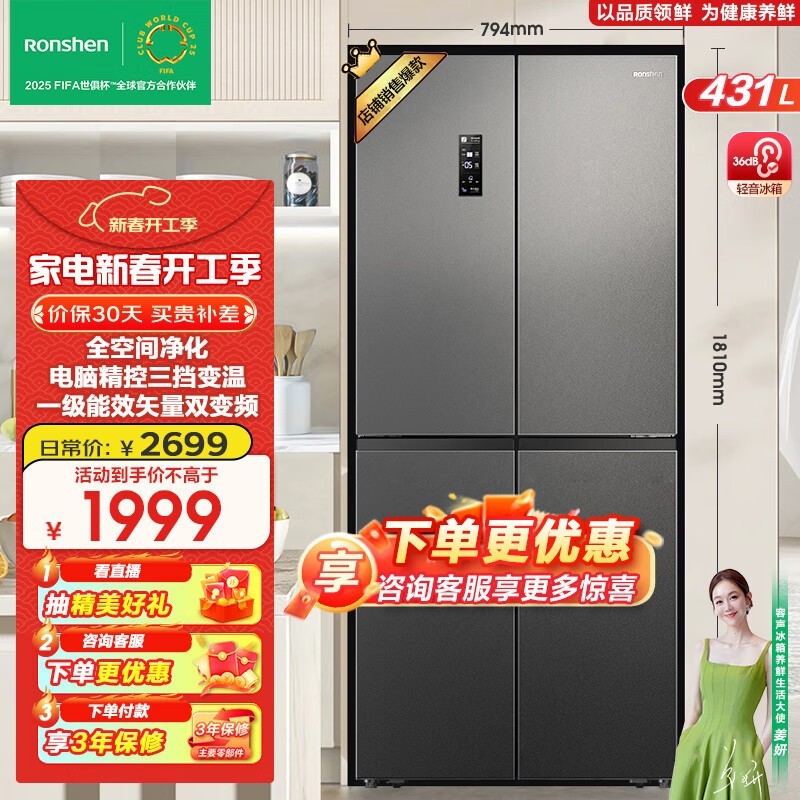 容声 BCD-431WD12FP 十字对开门冰箱仅售1663元