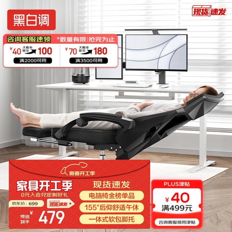 黑白调P4 Pro人体工学电脑椅耀黑优惠439元