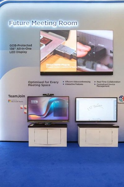 针对企业会议与专业训练等应用,92寸ViewBoard 5K交互一体机凭借其优异的多任务处理能力和清晰的视觉呈现,荣获“视讯科技”类别大奖。此一体机配备21:9超宽屏幕比例与5K分辨率,确保会议内容展示的完整性;加上其高规格硬件设置,大幅提升数据处理速度与多任务处理能力,确保高效进行各项专业协作与策略讨论。