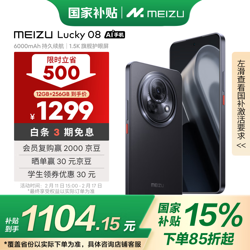 魅族MEIZU Lucky 08 5G手机仅售1068元 陨石黑色设计抢到就赚到!
