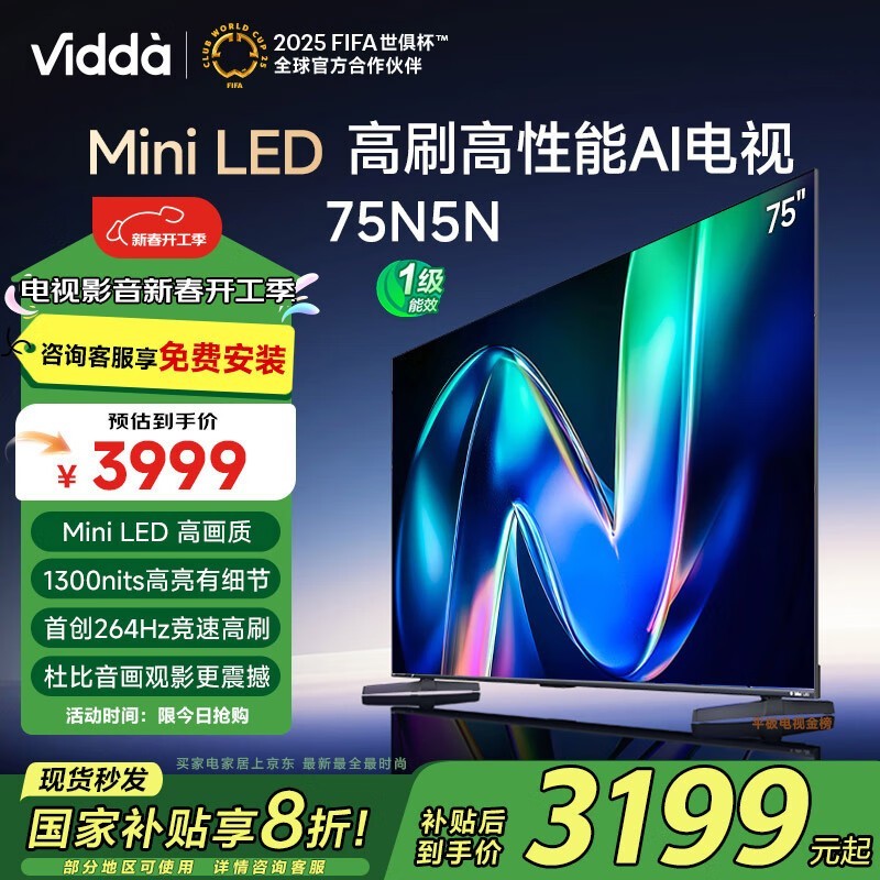 Vidda 75N5N:16:9 MiniLED大屏电视,264Hz高刷+智能语音,现仅3799元起!