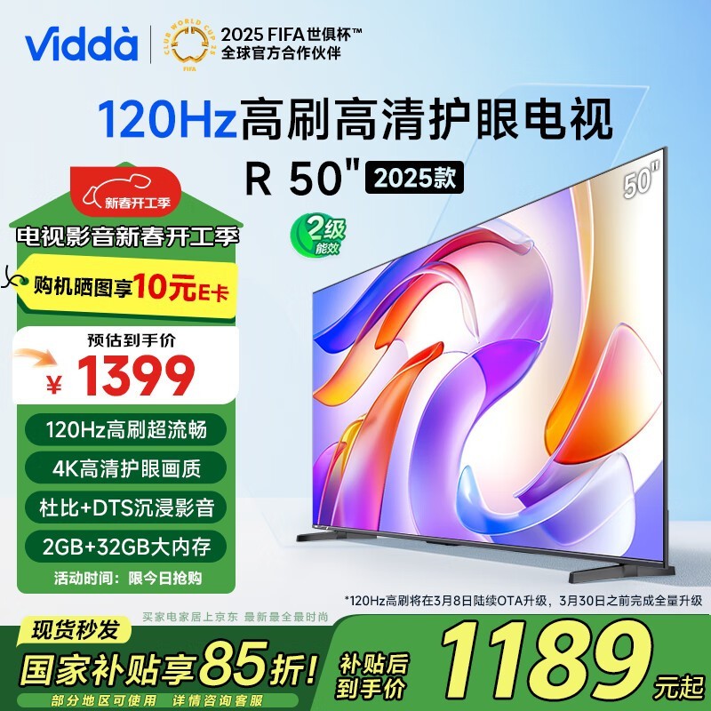 2024年度新品:Vidda 50V1ND-R,120Hz 4K护眼智能电视,流畅体验仅售1399元