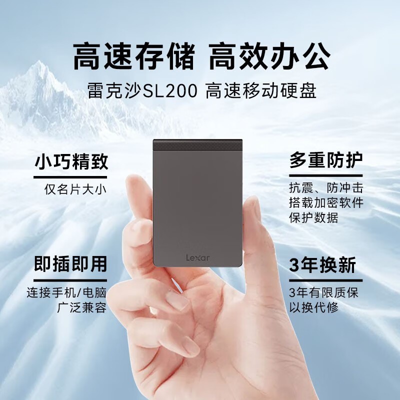 雷克沙SL200移动固态硬盘高速传输,9.7折优惠!