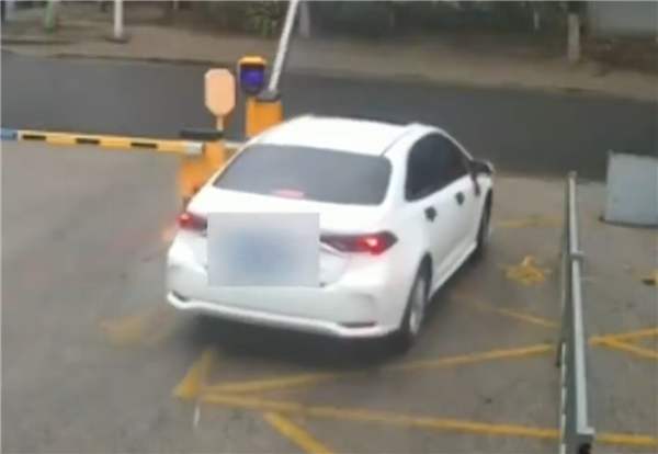 监控画面显示,一辆白色的丰田轿车通过入口闸机进入停车场后,没有立即停车,而是掉头驶向出口。