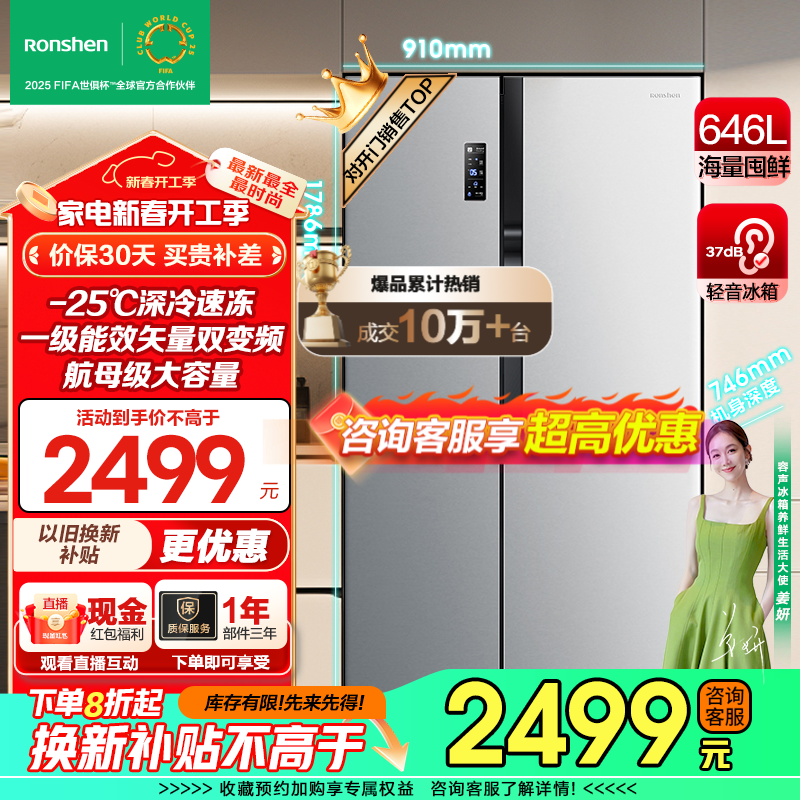 容声 BCD-646WD11HPA 风冷对开门冰箱 646L 银色