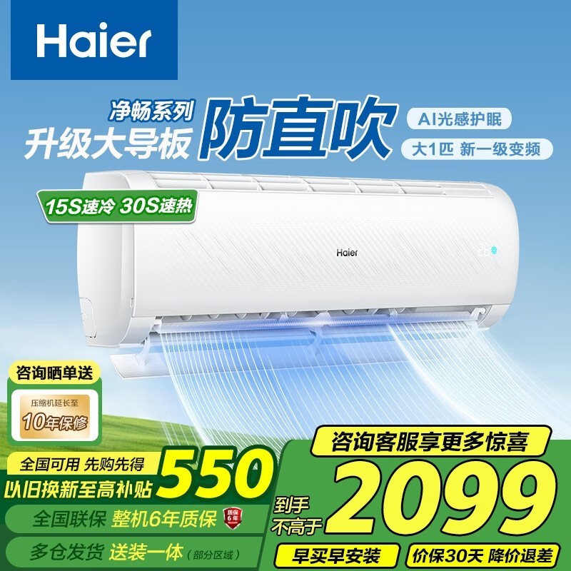 海尔 KFR-26GW/B1KPB81U1 一级能效挂机空调仅售1099