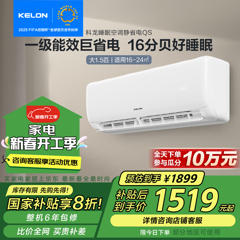 科龙 KFR-35GW/QS1-X1 新一级能效 壁挂式空调大1.5匹 1899元秒杀