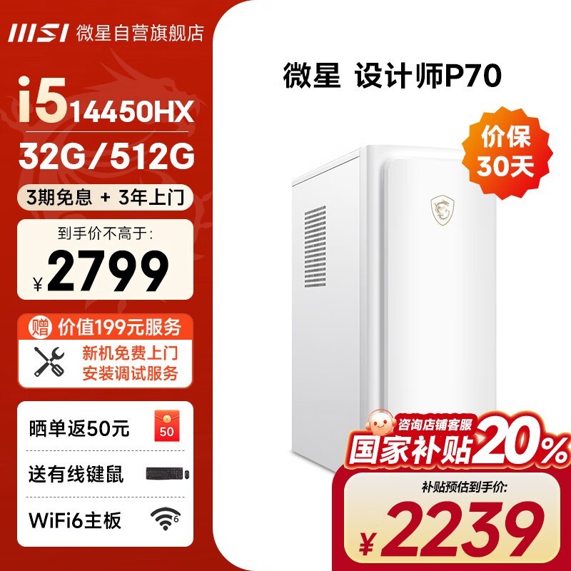 微星设计师P70台式机电脑 2799元入手