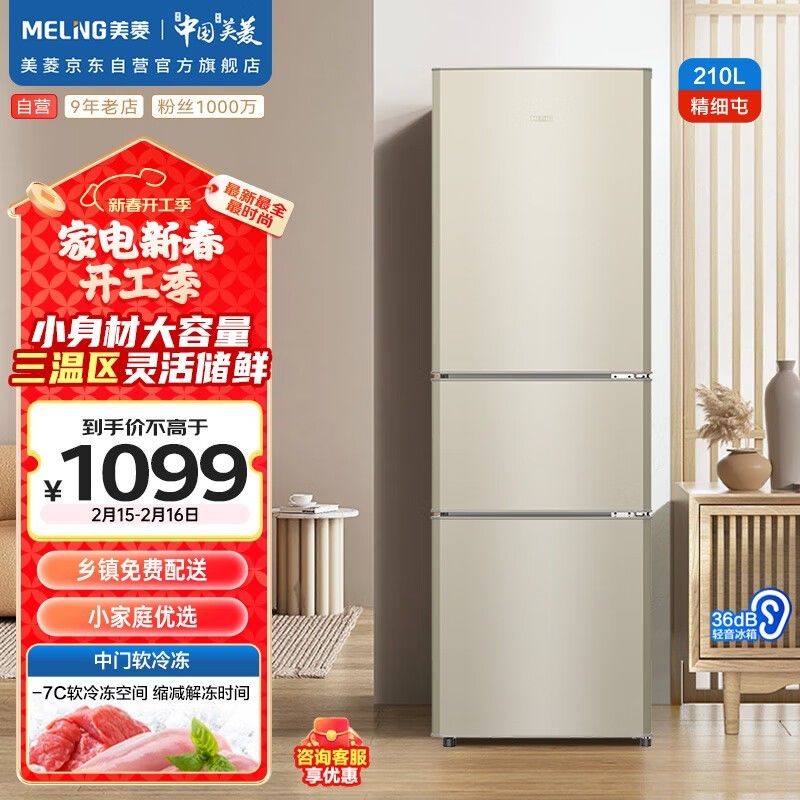 美菱 BCD-210L3CX 三门冰箱京东促销价1049元