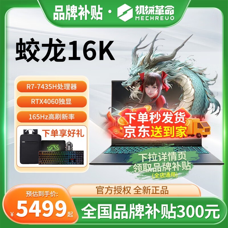 机械革命蛟龙16K游戏本满减300元 5699入手