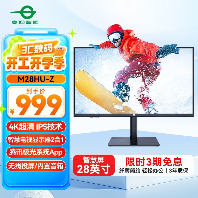 泰坦军团M28HU-Z 28英寸4K IPS显示器仅售843元