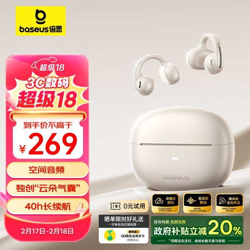 倍思小云朵骨传导蓝牙耳机限时特惠!