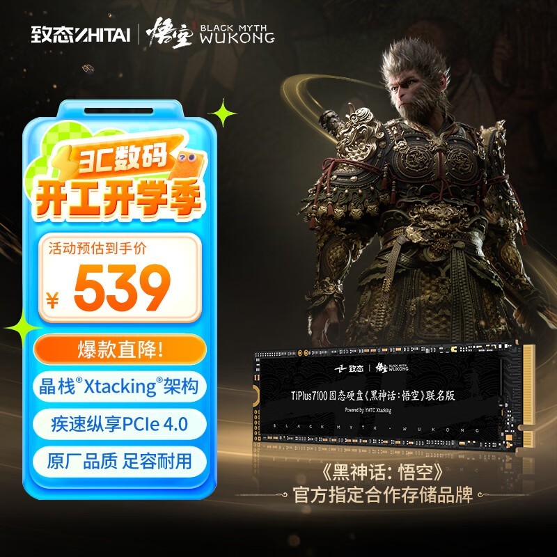 致态TiPlus7100《黑神话:悟空》联名版NVMe M.2固态硬盘1TB超值购