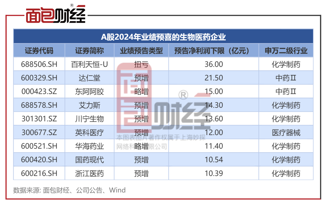 73家业绩预喜,百利天恒-U、达仁堂利润规模居前