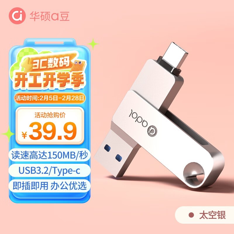 华硕a豆64GB Type-C U盘:优雅设计,双接口便捷,高速存储的出行伙伴