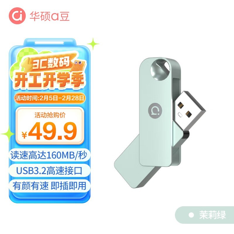 华硕a豆128GB USB3.2金属旋转U盘:时尚茉莉绿,商务办公高效存储伙伴