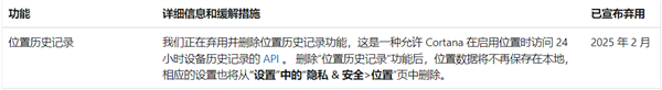 这一功能是一个面向开发者的API接口,允许微软小娜(Cortana)在启用位置功能时访问设备的24小时历史记录,由于Cortana已经停止开发,这一功能的保留已无实际意义。