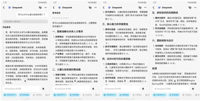 这不,马上开学季到了。我们抓起手机就问了下「学习ai为什么要从娃娃抓起?」。问小白上的DeepSeek-R1 通过检索网络后很快就给出了答复。