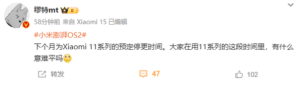 【CNMO科技消息】2月17日,有数码博主透露,小米11系列将在下个月停止系统更新。这款手机于2020年12月28日发布,2021年1月1日正式上市,至今已经超过了四年的时间。