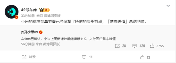 小米SU7新增锁单节奏脱离淡季节点 交付回归常态峰值