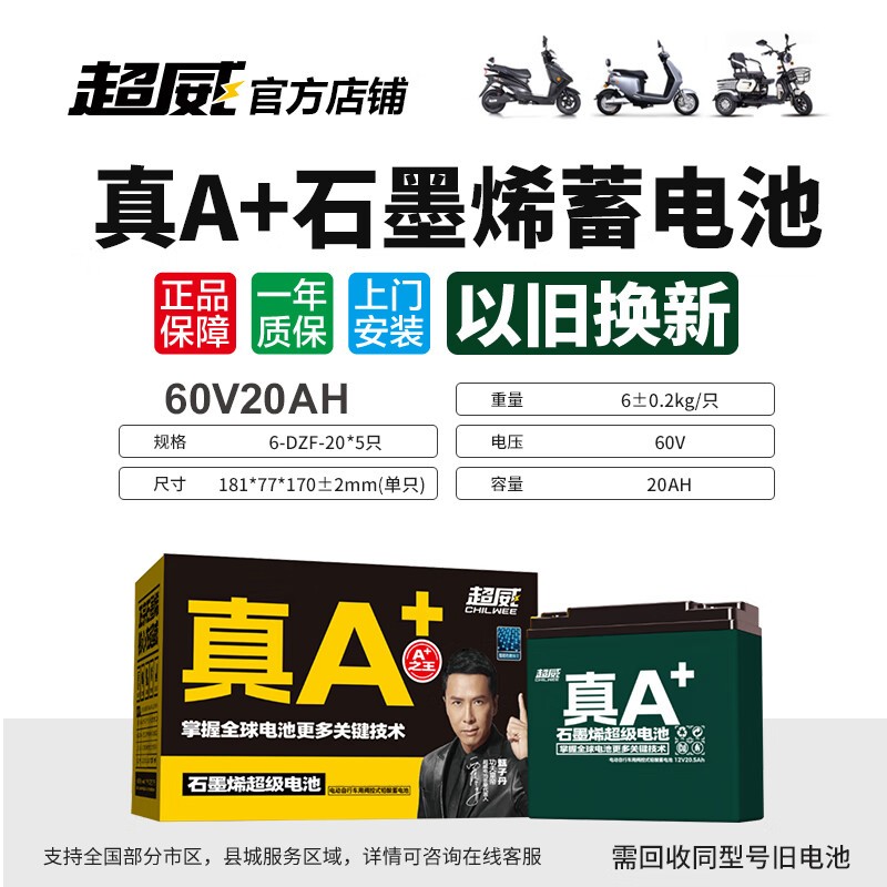 超威石墨烯铅酸电池60V 20.2A,369元抢购