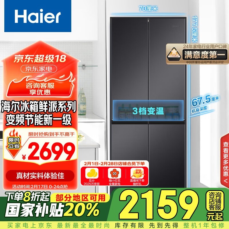 海尔风冷冰箱仅需2669元!