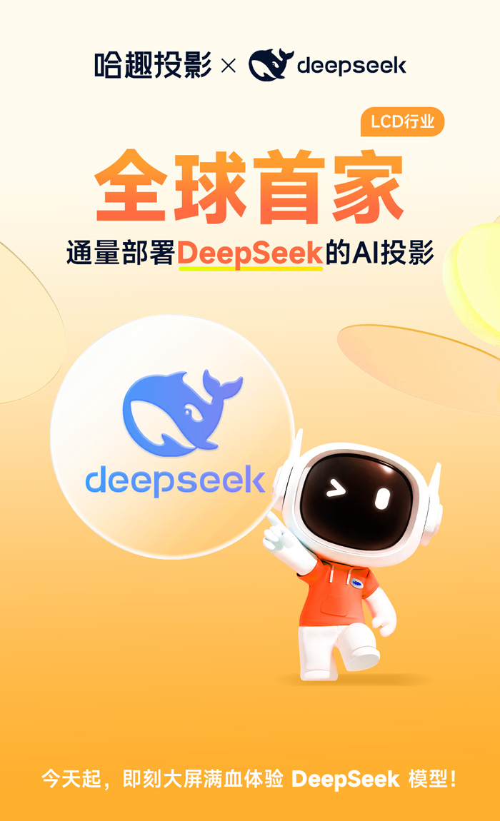 DeepSeek的成功,也为业内众多公司提供了新的方向,就在今天,哈趣投影正式宣布成为全球首家通量部署DeepSeek的LCD投影品牌,为这个行业开拓了新的方向,AI从底层优化智能交互体验,投影反哺AI技术的场景化落地,这一操作表明了AI投影时代的正式到来!