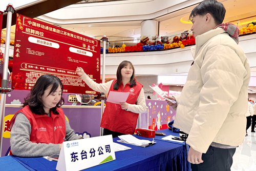 春节刚过,江苏盐城地区2025年新春招聘会已火热启动。在这场助力就业的盛会上,江苏移动盐城分公司积极响应,不仅安排志愿者现场服务,及时为返乡求职人员提供通信业务和服务保障,还布置专席,提供社区经理、装维工程师等多种岗位,为求职者提供更多选择空间。招聘会现场,移动志愿者们活跃在招聘专区,热情地为每一位求职者答疑解惑,详细讲解各个岗位的具体需求、福利待遇、职业发展路径等求职者关注的问题,用专业与热情,帮助求职者在家门口就能找到心仪的工作。