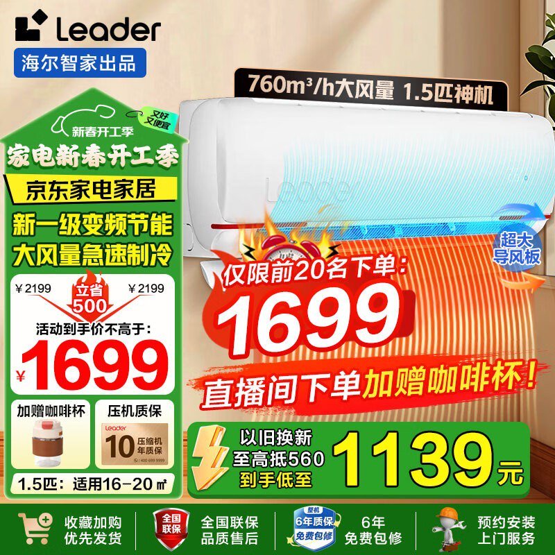 Leader元气系列新一级能效壁挂式空调优惠1588元!