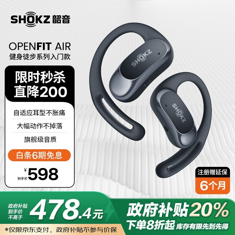 韶音 OpenFit Air T511 开放式真无线降噪蓝牙耳机到手456元
