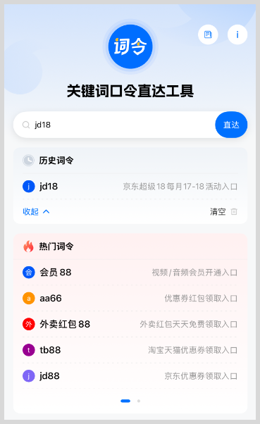 手机安装「 词令 」App,打开后输入口令「 jd18 」,搜索直达该口令关联的目标在活动时间内打开京东超级18活动入口,参加活动享受优惠!!!