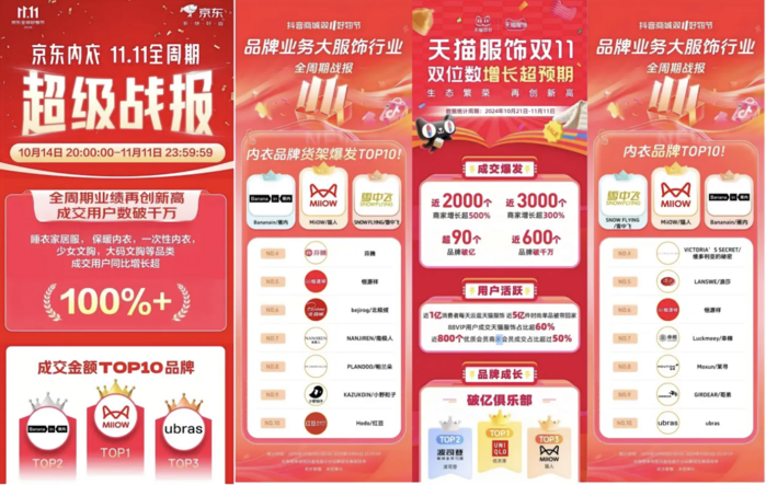 举个例子,蜂巢杯文胸,采用液态发泡科技,透气性超国标5倍,成为天猫文胸品类TOP1;热八度保暖衣,搭载石墨烯内暖技术,获“中国南北极科考队指定用品”认证。