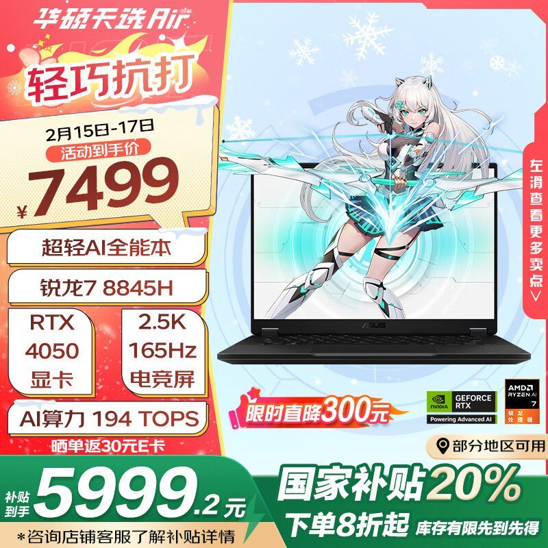 华硕ASUS天选Air 2024游戏本限时立减2000元!