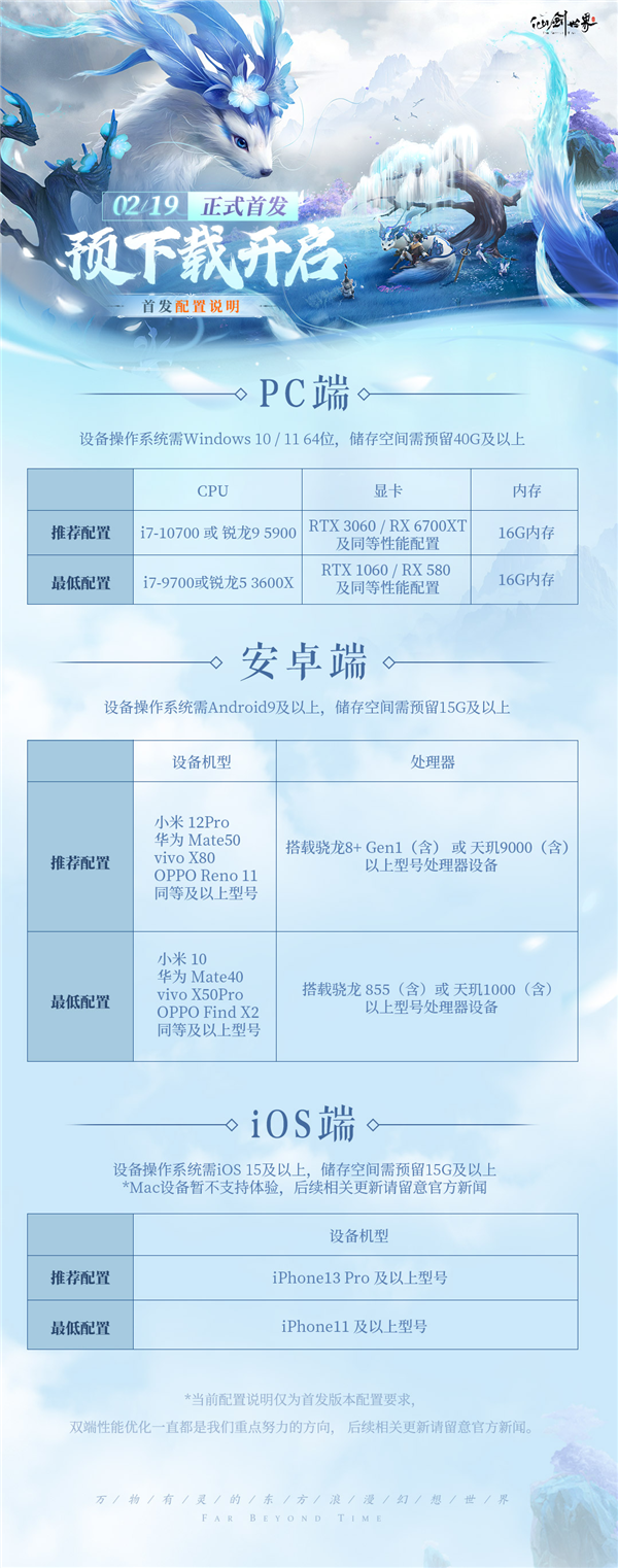 此前2月6日,《仙剑世界》官方正式宣布全网预约量突破1000万。作为仙剑IP首款开放世界RPG,《仙剑世界》将实现PC、安卓、iOS三端覆盖。
