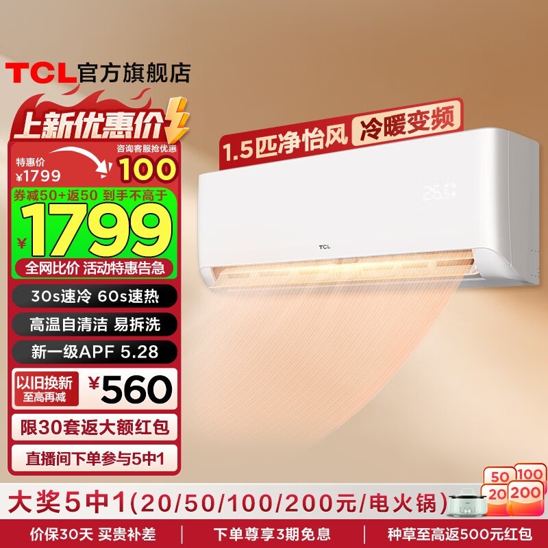 TCL新一级能效空调挂机1399元限时购 优惠20%