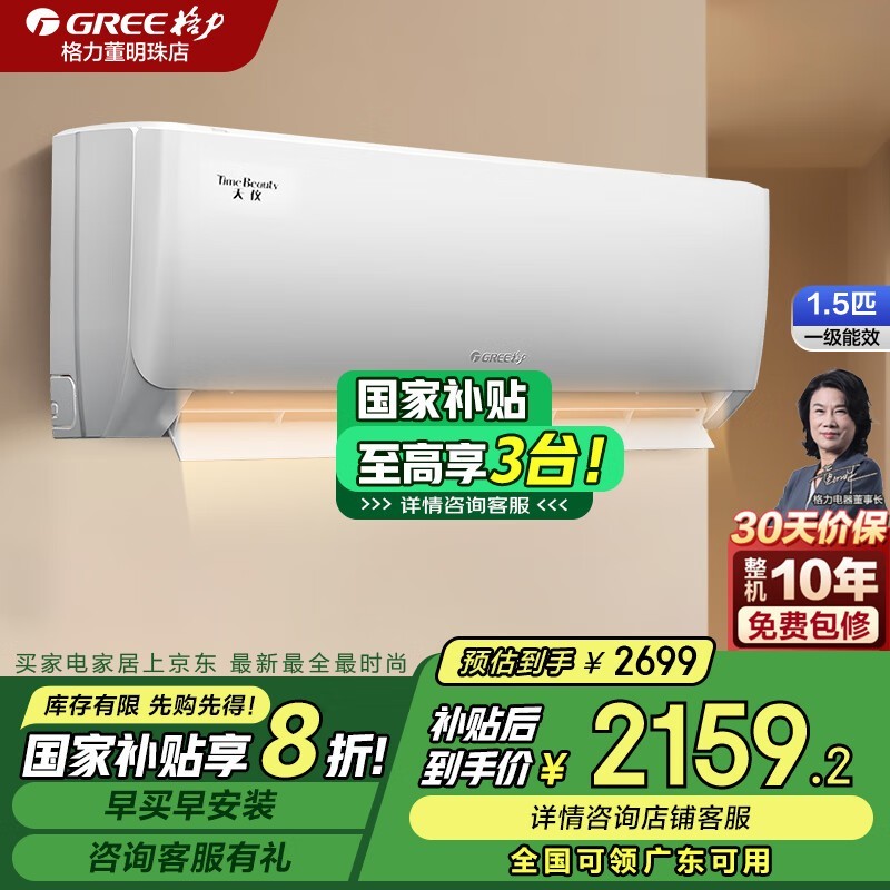 格力一级能效变频空调2096元!