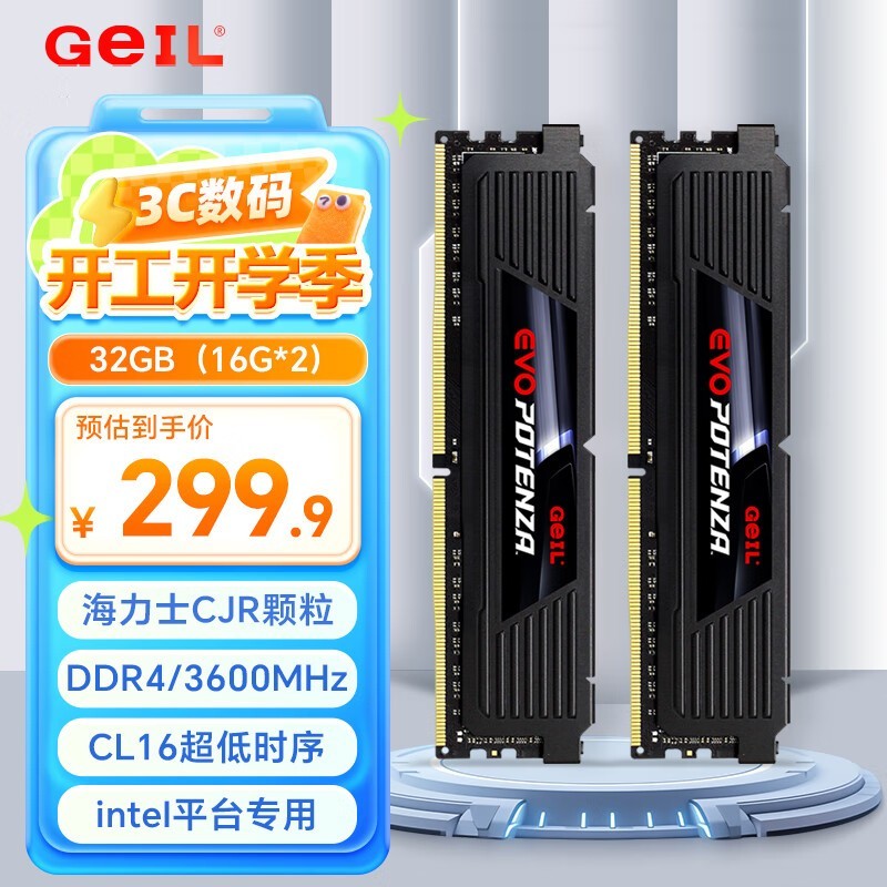 海力士CJR颗粒 内存条 32GB DDR4 3600 台式机内存条仅需299元