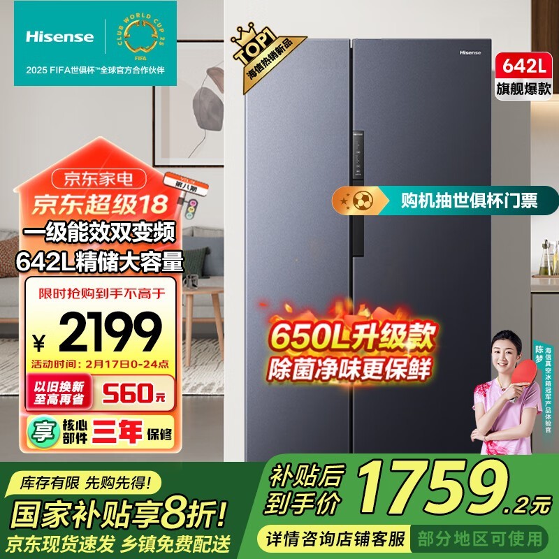 海信一级变频冰箱1583元抢购