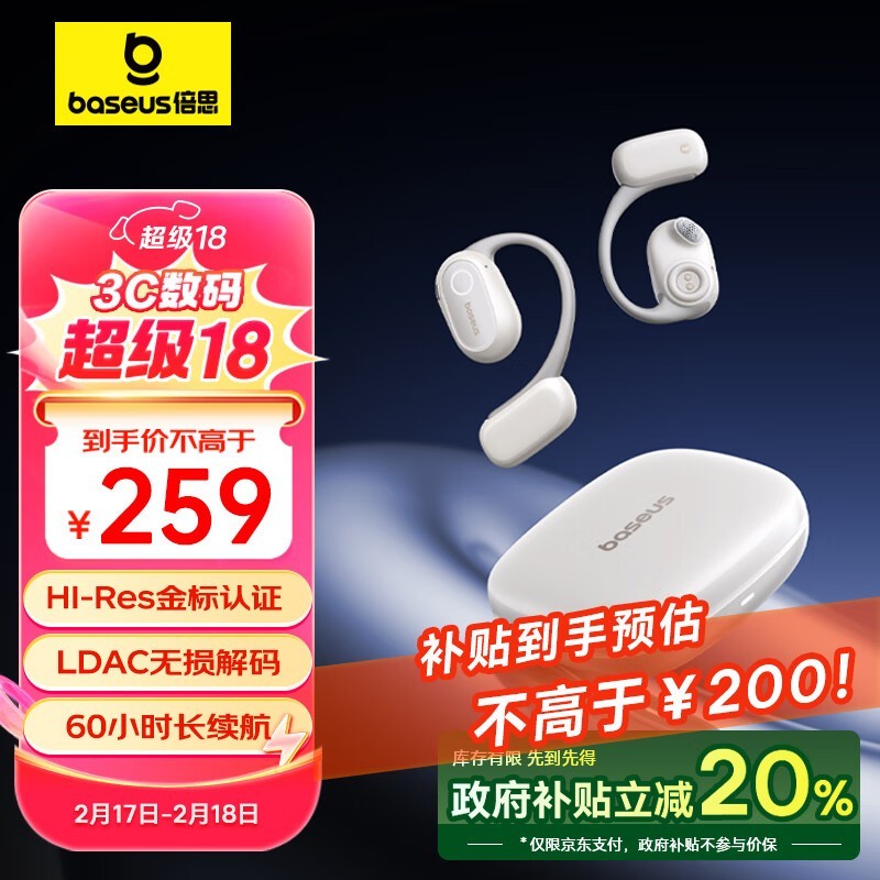 倍思骨传导耳机秒杀价199元!