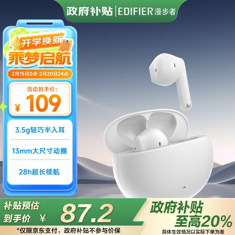 漫步者声迈X2 真无线降噪蓝牙耳机 87.2元抢购