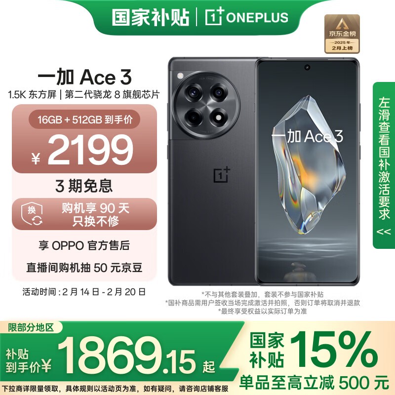 一加Ace 3手机售价跌破2000元,仅需1842元