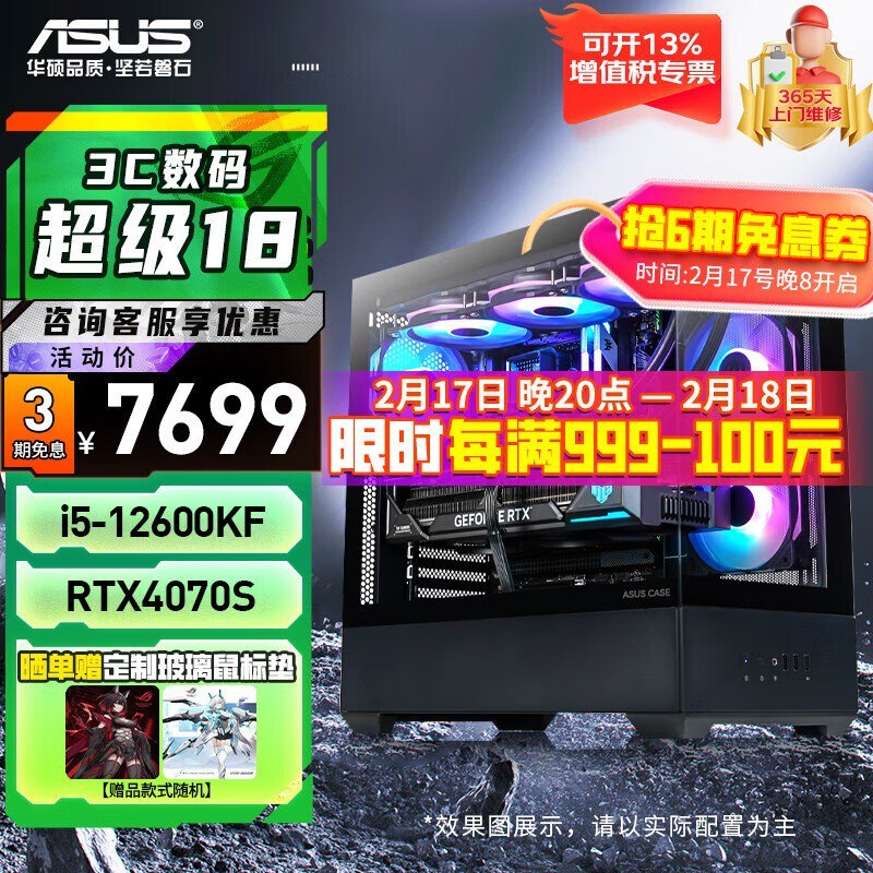华硕ASUS电竞游戏台式电脑整机优惠促销中 7699元入手