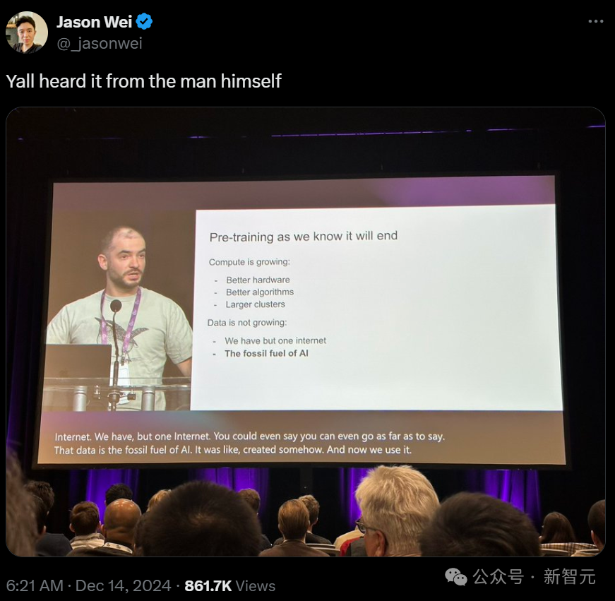 去年,Ilya现身NeurIPS 2024,当时他在大会上宣布:预训练从此将彻底终结。