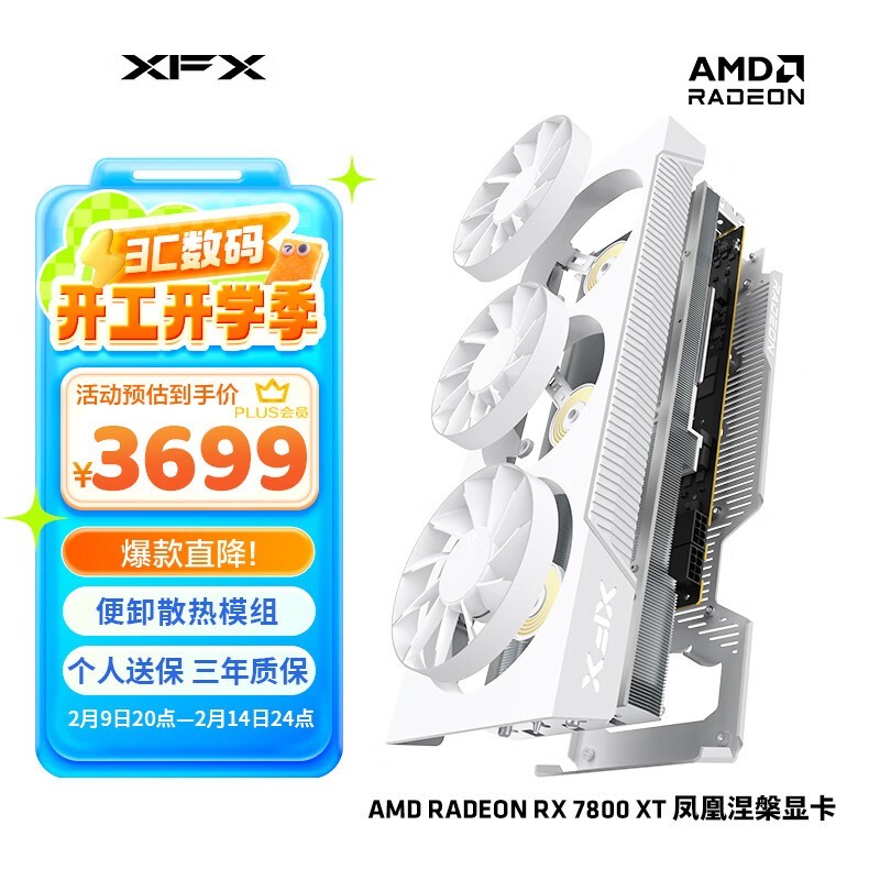 讯景 RX 7800 XT 凤凰涅槃显卡 白色外观 性能强劲