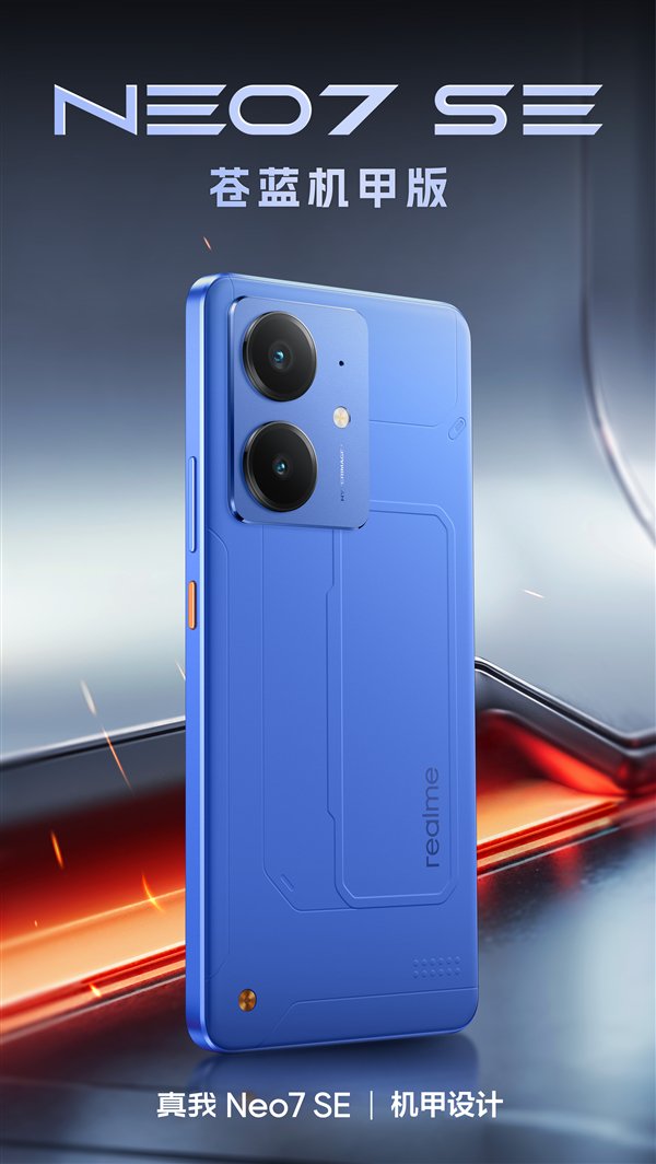 快科技2月18日消息,今天,真我Neo7 SE外观公布,新品主打配色是苍蓝机甲版。
