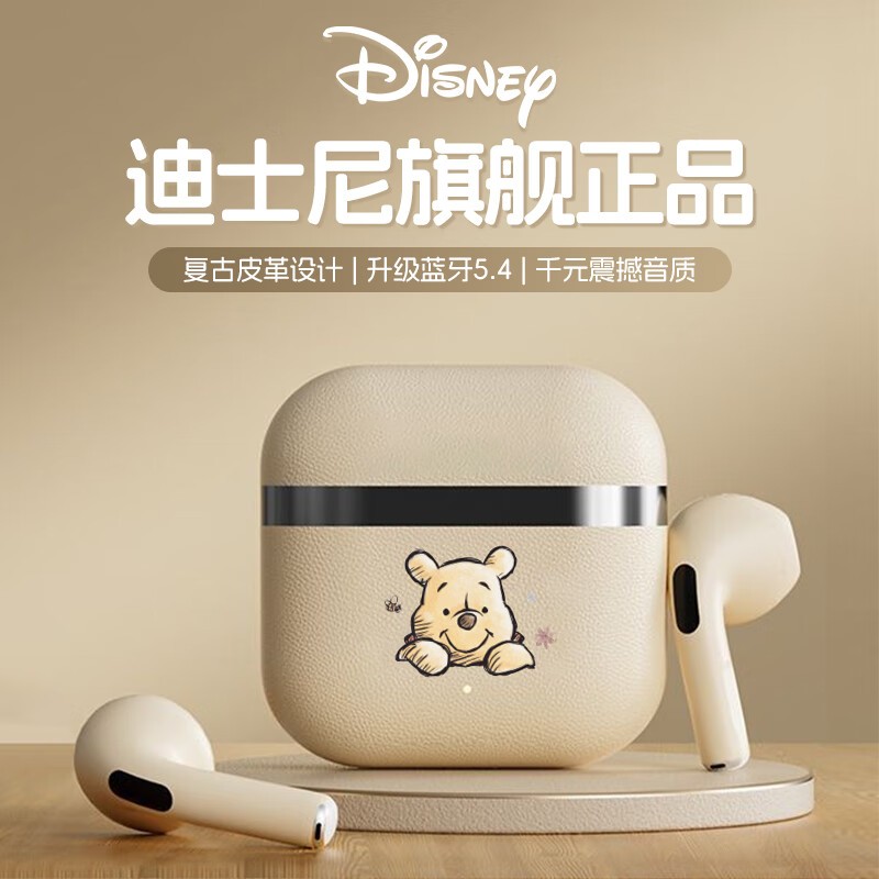 迪士尼HY-68蓝牙耳机:运动音质新宠,59.0元享半入耳设计、IP防护与经典米色风尚