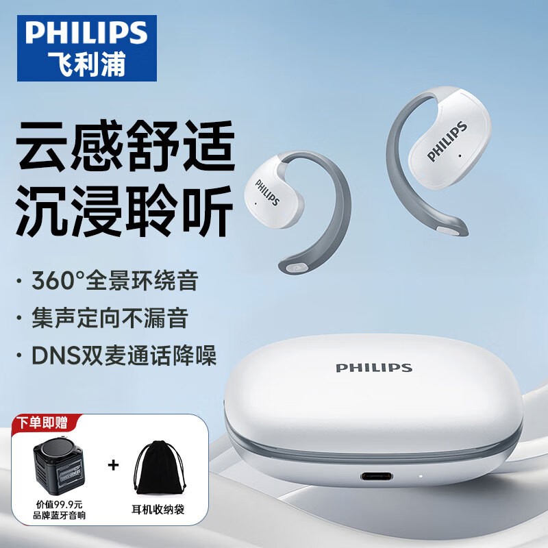 飞利浦TAT2708:运动健将之选,开放式骨传导蓝牙耳机,120小时续航,仅售179元